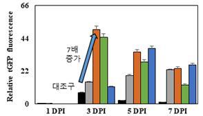 ▲TYLCV 유전자 이용시 형광강도 7배 증가