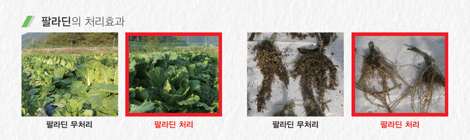 ㈜경농의 토양훈증제 팔라딘 유제는 토양 내 희석처리로 가스를 발생시켜 선충을 비롯한 각종 문제해충 및 병원균의 발생밀도를 줄여준다. 또한 잡초 발생률까지 낮춰 작물 연작으로 황폐해진 토양을 다시 깨끗한 환경으로 개량한다. 팔라딘 유제는 처리 시 가스가 기화하면서 약효를 나타내기 때문에 토양 내 침투성이 높다. 시설하우스에 설치된 점적테이프나 관수호스를 이용해 안전하고 편리하게 처리 가능하다는 것도 장점이다. 또한 기존 소독제에 비해 인축에 대한 독성과 자극성이 낮고 작물의 안전성은 높다. 팔라딘 유제는 잔류허용기준(MRL)과 일일섭취 허용량(ADI)의 설정이 면제되는 성분으로, 농촌진흥청 등록기준에 고시된 제품이다. 천연물질에서 유래된 팔라딘의 주요 성분인 디메틸디설파이드는 휘발성이 높아 잔류성이 없는 것으로 알려져 있다. 팔라딘 유제처리 4주 후 작물을 정식할 수 있으며, 잔존 가스 피해가 없어 기타 테스트 없이 적용이 가능하다.