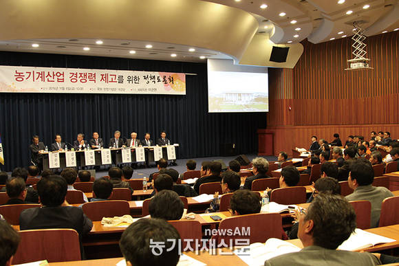 한편 이날 주제발표와 토론에 참여한 김종훈 농림축산식품부 식량정책관은 “내수시장 확대 한계로 인한 국내 시장 정체, 대부분 영세한 중소업체로 초기 R&D 투자 부담 및 신기술 개발 한계로 인한 산업경쟁력 취약, 외국산 농기계의 국내 시장 잠식이 대두하고 있다”고 지적했다. 김 식량정책관은 2010∼2014년 정부지원 농기계 판매에서 외국산 농기계의 비율이 트랙터 26.8%, 콤바인 33.9%, 승용이앙기 62.8%를 차지하고 있다고 말하고, 합리적인 기준에 따른 융자차등화 제도를 검토하고 있다고 밝혔다.