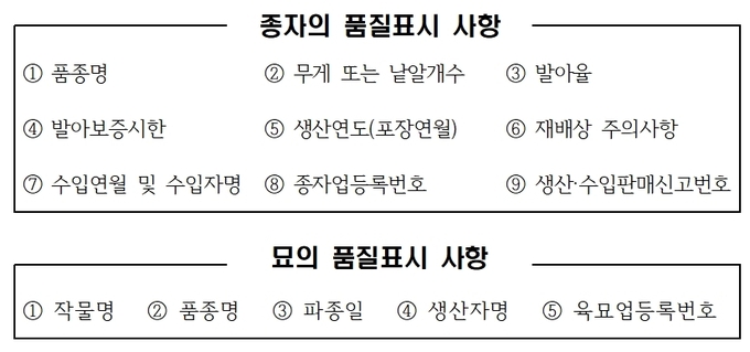 국립종자원 충북지원 관계자는 “불법·불량 종자와 묘의 유통으로 인한 소비자의 피해를 예방하기 위해 종자구입 시 반드시 품질표시 및 발아보증시한 경과여부 등을 확인 후 구입할 것”을 당부하며, “불법·불량 종자유통이 의심될 경우 국립종자원 충북지원으로 신고해 주면 불법 종자유통을 근절하는데 큰 도움이 될 것”이라고 밝혔다.