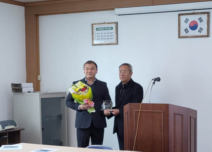 이날 행사에는 매년 다 발생하여 유기농 벼에 막대한 피해를 입혔던 저온성 해충 '벼물바구미'에 대한 효과적 방제 유형을 정립하고 고품질, 다수확할 수 있도록 컨설팅 및 적극적인 지원을 아끼지 않은 친환경 유기농 병충해 약제 전문기업 ㈜자연과미래(대표 박매호)와 고창군청에 감사패 전달식을 가졌다.