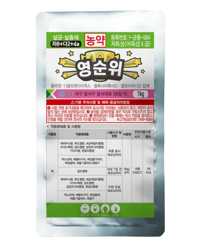 영순위 입제는 국내 최초로 등록된 ‘디클로벤티아족스’를 함유한 3중 합제 육묘상처리제다. 파종동시 처리는 물론, 이앙동시 처리가 가능한 3세대 제품으로 경영비 절감, 고품질 쌀 생산에 도움을 준다. 기존에 사용하던 제품과 다른 새로운 성분으로 저항성이 없고 본답 초기에 발생하는 문제 병해충에 대해 우수한 효과를 발휘한다. 영순위 입제는 작용점이 1개인 기존 제품과 달리 약제의 작용점이 2개로 작물의 저항성을 높여준다. 또한, 서방형 조립식 입제 형태로 기계처리에 적합하고 약 90일간 유지되는 긴 지속효과를 보인다. 긴 지속력을 바탕으로 생육후기의 노린재와 문고병 방제에도 탁월하다.