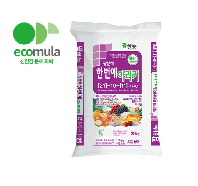 ‘광분해 한번에아리커’는 원예작물의 생육에 최적화한 '한번에아리커'에 팜한농의 광분해 기술(에코뮬라)을 적용해 햇빛에 노출되면 코팅 재료가 서서히 분해된다. 지난해 농림축산식품부의 ‘녹색기술인증’과 산업통상자원부 국가기술표준원의 화학·생명 분야 신기술(NET) 인증을 획득했고, 제품의 차별성과 성능을 인정받아 ‘원예용 복합비료 조성물’ 특허 등록도 완료됐다.