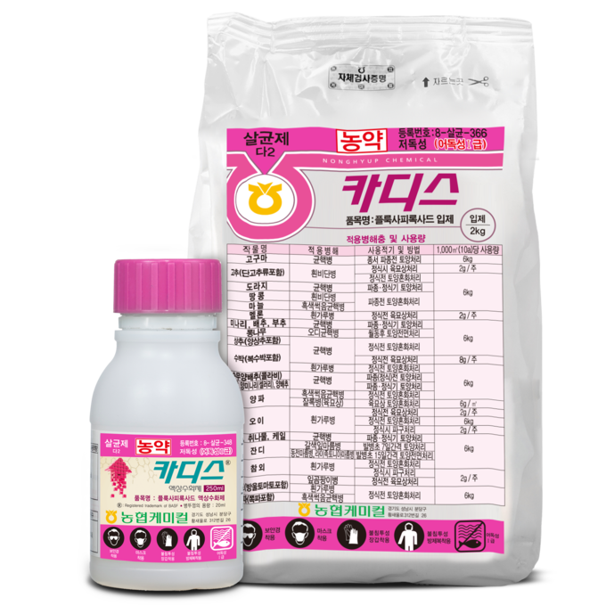 - 살균제에 저항성을 가진 병원균(검은별무늬병, 흰가루병, 잿빛곰팡이병 등)도 빈틈없이 방제 가능