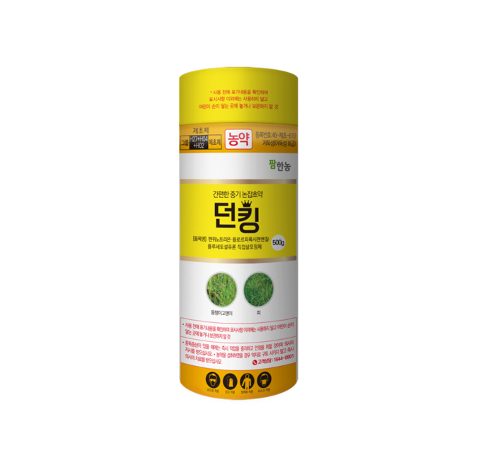신제품 ‘던킹 직접살포정제’는 ‘플로르피록시펜벤질’ 성분을 함유해 난방제 잡초에 약효가 우수하며, HPPD 저해제인 ‘펜퀴노트리온’을 함유해 저항성 물달개비와 저항성 올챙이고랭이 방제에도 효과적이다. 피 3엽기까지 방제 가능하며, 별도의 살포기 없이 논둑에서 간편하게 던져서 편리하게 사용할 수 있다. 도넛형 정제로 발포력이 우수해 포장 전체에 약효가 균일하게 발휘되며, 다양한 벼 품종에 안심하고 사용 가능하다.
