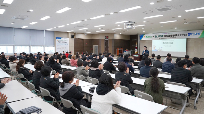 순천농협 최남휴 조합장과 미스터아빠 서준렬 대표가 참석한 가운데 순천농협 본점 대회의실에서 열린 본 행사에는 100여명의 순천농협 파머스마켓 직원, 순천농협 경제상임이사, 파머스마켓 분사장, 경제사업본부 및 APC 임직원 등이 참석하였다.