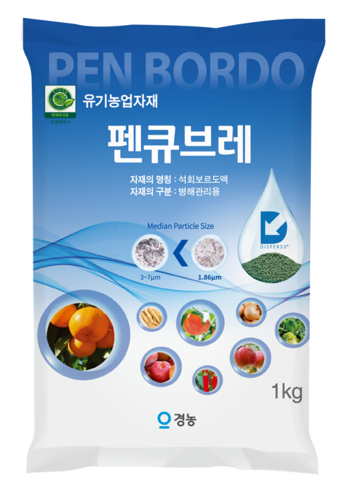 특히 생산비용 절감을 위해 직접 제조해 사용하는 경우도 많은데 이때 각 유효성분들 간 비율과 혼합방법 등을 정확히 알아야 효과를 높일 수 있는데다 이 과정에서 번거로움도 있어 최근에는 전문 농자재 기업의 제품을 구입하는 경우가 늘고 있다. 석회보르도의 혁신적 진화, 펜큐브레 경농의 펜큐브레는 ‘사용이 편리하고 효과도 우수한’ 게 강점이다. 보르도액 원산지인 프랑스 Cerexagri S.A.S의 수입 완제품으로, DISPERSS 기술로 제조돼 수화성 및 물리성을 높인 초미세 입상수화제다.