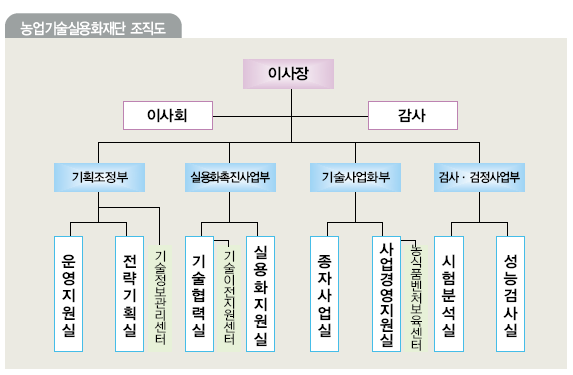 업무의 집행을 담당할 4부는 기획조정부, 실용화촉진사업부, 기술사업화부, 검사·검정사업부 등이며 3센터는 기술정보관리센터, 기술이전지원센터, 농식품벤처보육센터 등이다. 기획조정부는 운영지원실과 전략기획실을 두고 사업계획 수립 및 운영을 총괄한다. 실용화촉진사업부는 기술협력실과 실용화지원실을 두고 기술협력․거래․이전․실용화 촉진지원 등의 사업을 수행하게 된다. 기술사업화부는 종자사업실과 사업경영지원실에서 종자증식사업, 사업발굴·경영·마케팅 등 사업화지원에 나선다. 검사·검증사업부는 시험분석실과 성능검사실을 두고 농자재 및 농산물 검사·검정·분석 등의 사업을 수행한다는 계획이다. 검사·검증사업부의 주요사업 가운데 농산업계와 밀접한 관련이 있는 사업은 다음과 같다. √ 농자재등록시험 : 공공시험연구기관 시험성적서 발급 분야 이관 √ 비료품질검사 : 검사량 및 분석종류 확대로 기술서비스 제고 √ 농기계시험평가 : 농기계검정, 평가, 국제공인, 표준화업무 수행 √ 민원 분석 : 토양·식물체 분석업무 등 위탁 중개알선·금융·회계·창업컨설팅 신규 채용 재단 운영에 가장 시급한 것은 소요 예산이다. 설립추진단이 추정한 소요예산은 올해 50억, 사업이 본격화되는 2010년부터는 277억원이 필요하다는 계산이다. 이 예산은 농식품부 기금을 통한 출연금과 국유재산 이관, 기존 농진청에서 수행하고 있는 사업비 이관, 실용화사업 촉진 신규사업비 등을 확보한다는 계획이다. 다만 올해 추경으로 자본금 출연 등의 예산확보가 어려운 상황으로 최소인원으로 출발하는 등 농진청의 예산지원 부담을 최소화 한다는 복안이다. 재단사업이 본격화되는 내년도 예산확보를 위해서는 중기 재정계획 반영을 추진하되 예산확보가 쉽지 않을 경우 국회 예산 심의 시에 추가 확보를 추진한다는 계획이다. 인력활용방안으로는 기능이관 분야(정원 이체)의 관련 업무수행 공무원을 적극 활용한다는 방침이다. 이때 연금혜택, 보수 상향조정 등의 인센티브 제공을 검토키로 했다. 특히 공무원 신분을 유지하고자 하는 경우는 별도정원 인정기간까지 파견 제도를 활용해 실용화재단 업무를 수행하게 된다. |