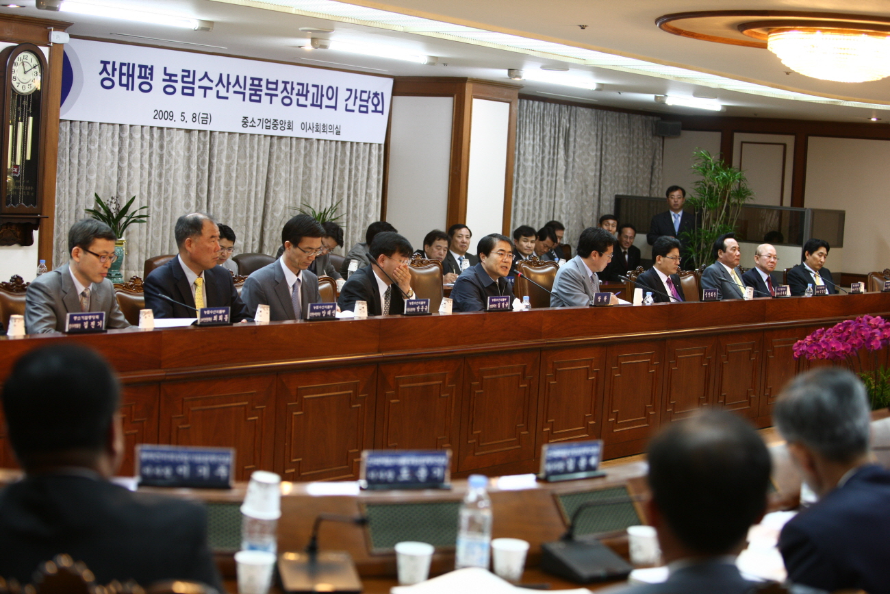 장태평 농림수산식품부 장관은 지난 8일 농식품부 장관으로서는 처음으로 중소기업중앙회가 개최한 ‘농림·수산·식품관련 중소기업 현안과제 간담회’에 참석해 모임 정례화 등을 제시했다. 이날 간담회에는 김기문 중소기업중앙회 회장과 농산업·농식품 중소기업 대표자 20여명이 참석해 26가지에 달하는 농식품분야 중소기업 현안과제를 제기했다. 김기문 회장은 이날 “농업관련 중소기업이 42만개나 된다.”면서 “농식품부와 유기적인 협조가 필요하다”고 말했다. 이에 대해 장 장관은 “농식품부 입장에서는 200만개에 달하는 것으로 생각한다.”며 “경영 마인드를 갖춘 농가도 중소기업으로 볼 수 있다”고 밝혔다. |