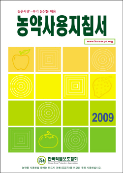 2009년 5월 1일 현재 우리나라에 등록된 전 품목에 대한 적용대상작물 및 병해충, 사용방법과 주의사항, 특징 등을 용도별, 품목별로 상세히 수록한 이 책자는 농약의 올바른 사용을 위해 한국작물보호협회에서 매년 발행하고 있다. 올해 농약사용지침서도 사용상 편의를 위해 동일성분 농약은 계속 병합 표기했으며, 상표·품목명을 망라한 가나다…순 ‘찾아보기’와 작물별 병해충에 사용할 수 있는 ‘작물별·병해충별 적용농약 찾아보기’를 권말부록으로 수록했다. 또 동일품목, 동일라벨제 시행으로 회사별 등록내용이 동일하나 등록회사 사정상 부득이한 경우는 적용대상 작물이 일부 다를 수 있으므로 농약을 사용할 때는 반드시 사용농약의 라벨(포장지)을 잘 읽은 후에 사용해야 한다. |