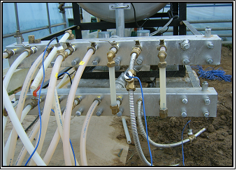 (주)신안그린테크(대표이사 장승호)가 원예특작과학원, 경북대, 하동농업기술센터와 공동으로 농림기술개발사업(ARPC) 지원을 받아 최근 특허 등록한 이 시스템은 시설재배에 많이 발생하는 연작 생리장해를 줄이고 병충해 예방을 통해 작물의 생육성장에 기여한다. 연구팀에 따르면 기존의 열수소독이나 증기소독의 경우 이로운 토양 미생물까지 박멸하는 단점을 안고 있었으나 이 토양소독기는 삼방변 밸브를 접목시켜 50~60℃ 정도의 열을 5일 정도 유지해 토양에 필요한 미생물은 안전한 반면 유해균의 경우 90% 이상을 박멸할 수 있다. 또 난방기를 통해 나오는 온수가 파이프를 따라 흐르는 동안 온수의 입·출력을 정방향과 역방향의 두 가지 형식 모두 가능해 적정 온도 유지를 위한 난방기 작동을 줄임으로써 에너지 절감에도 효과적이다. 이와 함께 기존의 지중난방기에 토양소독이 용이한 설비를 장착하면 토양소독과 지중가온을 동시에 활용할 수 있어 지중난방기의 효율을 크게 증대시켰다. 연구팀은 앞으로 지중난방기 및 온수난방기에 별도의 구조개선 없이 삼방변 밸브 시스템을 활용 할 수 있도록 검토 중에 있다. 또 유해균의 사멸 온도 및 지중온도의 측정으로 토양 상태에 적합한 소독이 가능하도록 병해 자료 및 배관기술의 체계화를 추진하고 있다. 현재 이 토양소독기는 전국 10여개 농가에 보조 사업으로 보급됐다. 삼방변밸브는 방향전환 밸브 개폐장치로 T자 형의 밸브가 온수의 입·출력을 정방향과 역방향 모두 가능케 해 수온을 일정하게 유지해준다. |