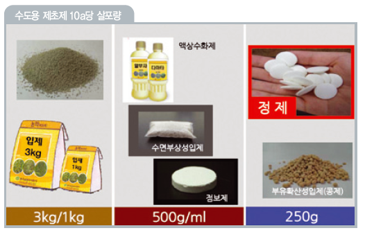 | 수도용 농약제형이 빠르게 진화하고 있다. 농촌인구의 급격한 감소와 고령화로 인한 농촌 노동력 부족현상에다 1인당 재배면적이 증가하고 환경친화의 사회적 관심이 높아지면서 적은 약량으로 확실한 효과를 발휘하면서도 살포시간을 대폭 줄여 노동력을 획기적으로 절감할 수 있는 농약을 필요로 하고 있기 때문이다. 벼 ‘육묘상 처리제’를 비롯해 초간편·생력화 제형의 논잡초약인 ‘점보제’ ‘수면부상성입제’ ‘부유확산성입제(콩제)’ ‘정제’ 등 농약처리가 간편하면서도 방제효과가 확실하고 환경 친화적인 제형의 이들 농약이 그 대표주자다. 먼저 벼 육묘상 처리제는 이앙전 모판에 미리 약제를 살포해 이앙 후 경엽 처리 없이도 흰잎마름병·줄무늬잎마름병·도열병·세균성 벼알마름병·문고병은 물론 살충효과에 이르기까지 다양한 병해충을 일거에 동시 방제할 수 있는 경제성과 편의성을 지닌 미래형 작물보호제로 인정받고 있다. |
