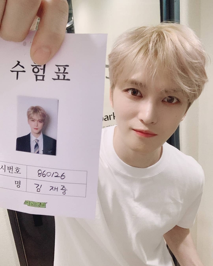 공개된 사진 속에는 김재중(제이와이제이)의 모습이 담겨 있는데, 수험표를 들고 환한 미소를 짓고 있다.