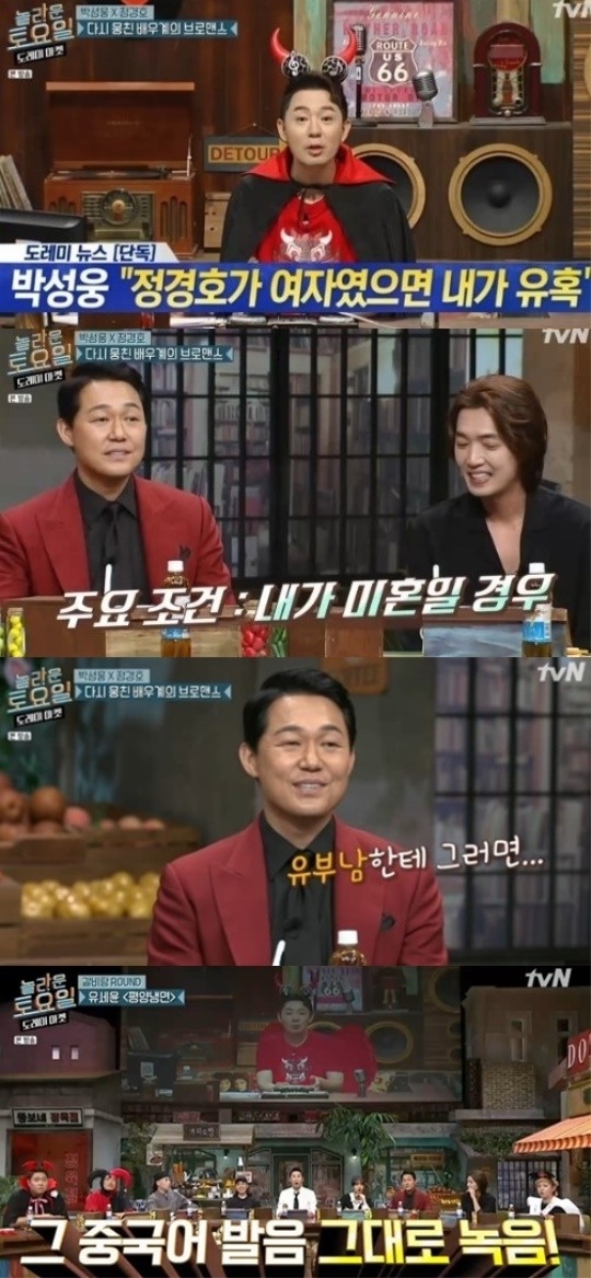 [농기자재신문=정유진 기자] 27일 방송된 tvN '놀라운토요일-도레미마켓'에서는 배우 박성웅과 정경호가 출연했다.