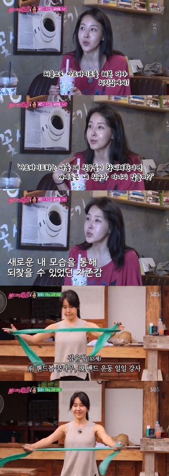 김윤정은 저녁을 거르고 홈트레이닝을 하면서 다이어트를 했다고 밝혔다.