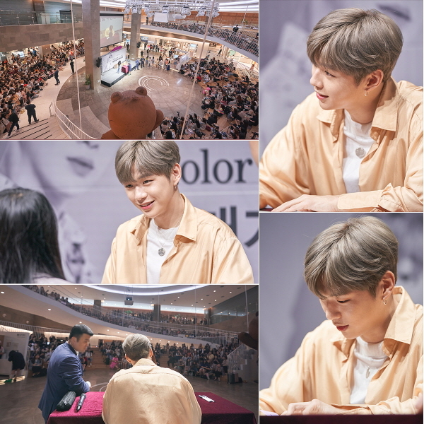 롯데백화점 부산본점 아레나광장에서 열린 팬사인회에서 강다니엘은 시종일관 미소를 띠며 팬들과 소중한 시간을 보냈다.