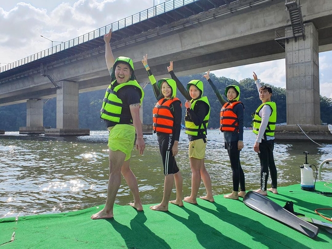 김가은은 지난 11일 인스타그램에 사진과 함께 “1박2일 가평 까니투어 수고했네 제군들 팀 좌우명 :체력은 곧 실력이다 팀 명: 소통 팀 구호: 가잣 가잣 까잣 !”라는 글로 근황을 공개했다.