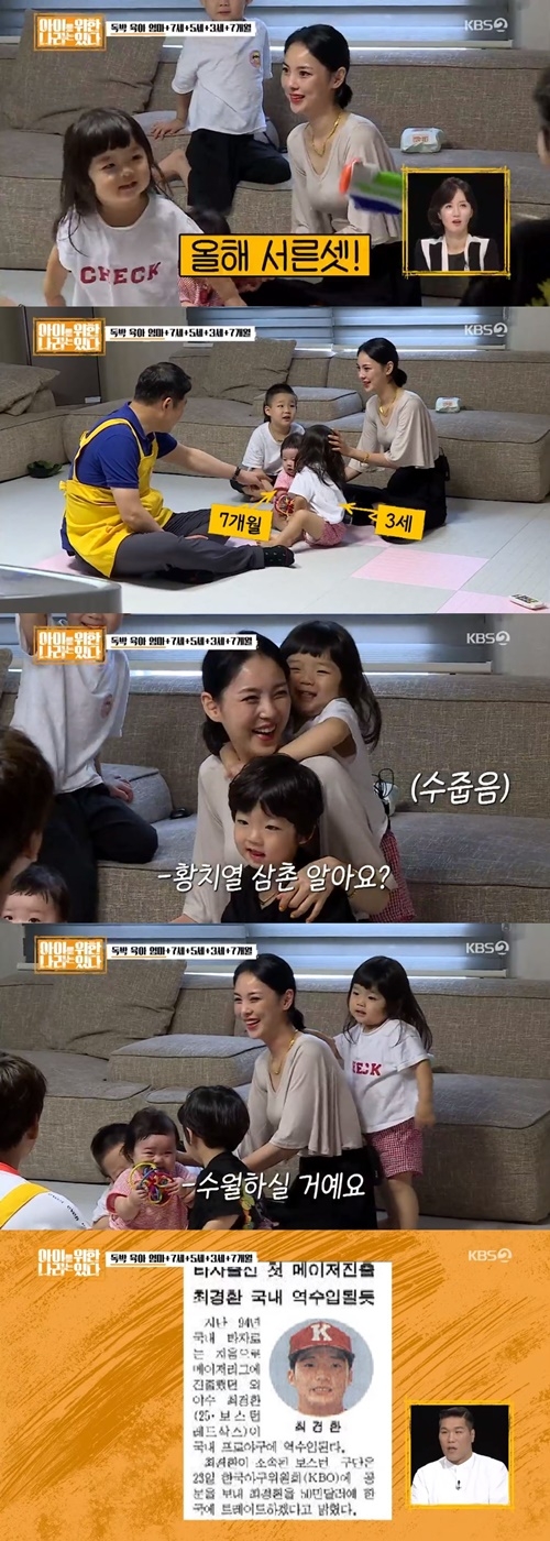 최경환의 아내는 7세, 5세, 3세, 7개월의 아이를 김구라와 황치열에게 맡겼다.