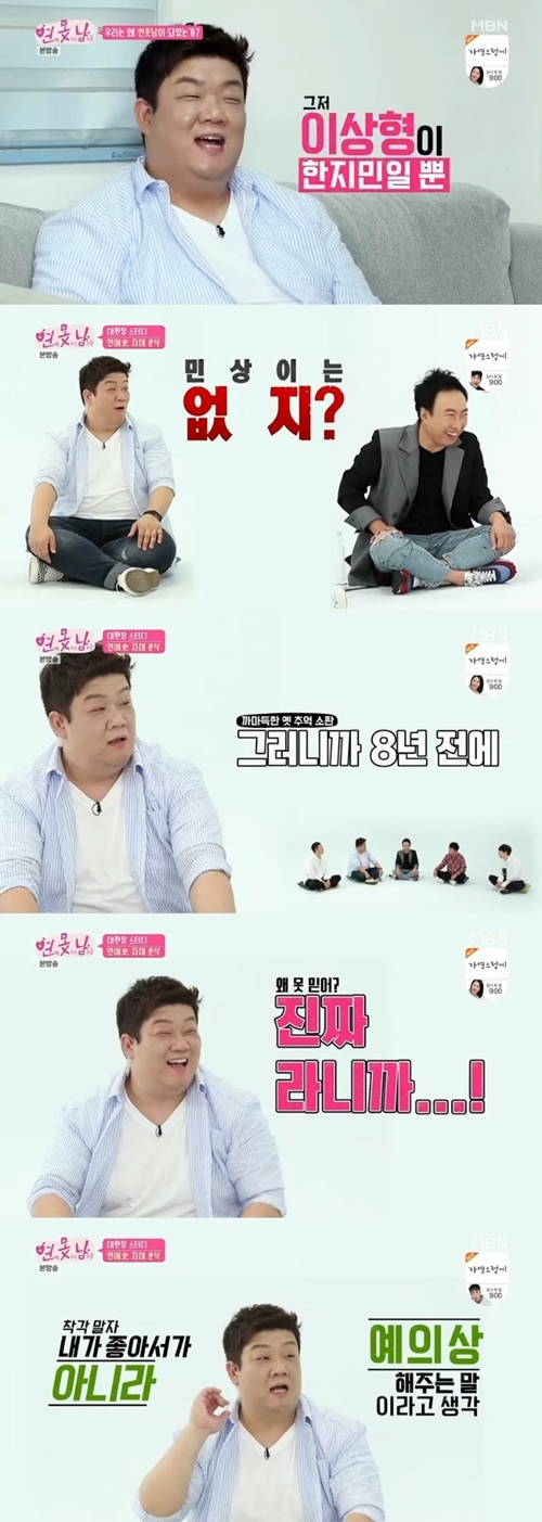 절친 유상무도 “형이 사랑에 상처를 참 많이 받았지. 많이 주기도 하고 받기도 하고”라고 진지하게 이야기했지만, 장동민이 여자라면 만날 수 있겠냐는 질문에는 “쉽지 않겠다”고 말해 웃음을 안겼다.