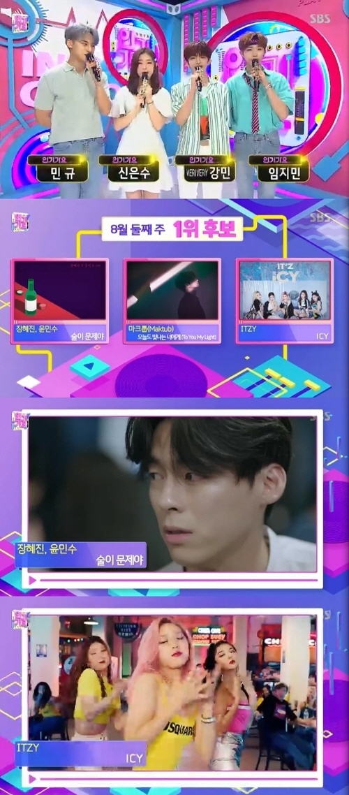 [농기자재신문=정유진 기자] 11일 방송된 SBS '인기가요' 8월 둘째주 1위 후보에는 장혜진, 윤민수 '술이 문제야', 마크툽 '오늘도 빛나는 너에게', ITZY '아이씨(ICY)'가 이름을 올렸다.