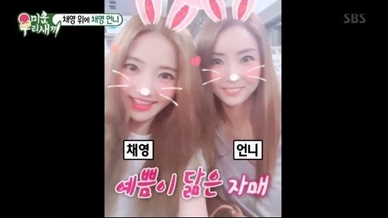 한채영은 "어릴 때 언니가 인기 더 많았다"면서 "제 이름을 사람들이 몰랐고 세라 동생이라고 했다. 제 별명이 세라 동생이었다"고 친언니에 대해 소개했다.