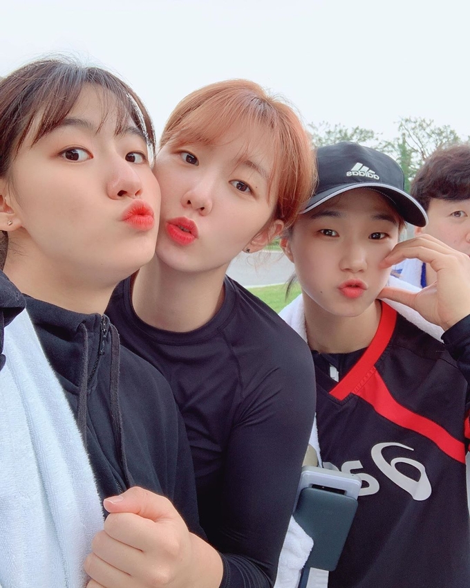 지난 17일 강소휘가 자신의 인스타그램에 “마지막 물놀이 대왕보스 두명 물먹이기 성공 미션클리어 ————”라는 글과 함께 사진을 올려 근황을 알렸다.
