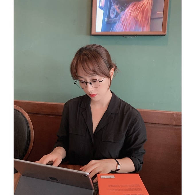 사진 속 임현주는 안경을 쓰고 일을 하는 모습이 포착됐다.