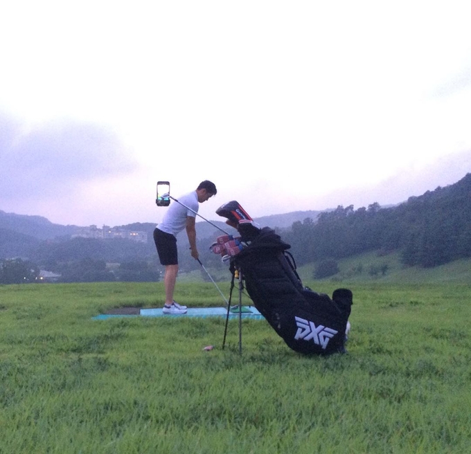 이를 본 팬들은 “얼 ~~~ 멋찌닷”, “오빠 무슨대회나가요??”, “대회? PGA드뎌 나가시는거에요?”, “골프선수”, “돌아 봤는데.. 뒤에 시아가 뙇!” 등의 댓글을 남겼다.