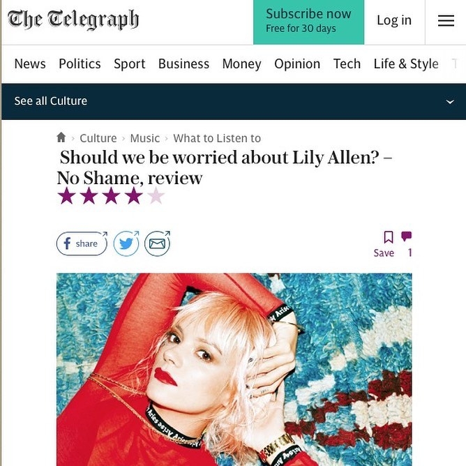 21일 릴리 알렌은 자신의 인스타그램에 “I don't think The Sun shines out of my ass or anything, but No Shame was pretty good.”라는 글과 함께 사진을 게재해 팬들의 이목을 집중시켰다.