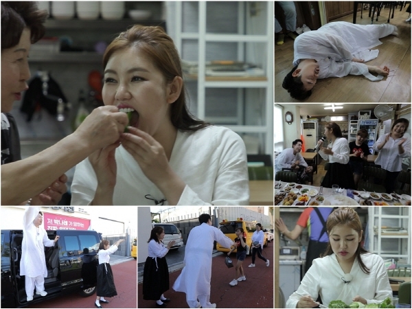 新먹방 요정으로 떠오르고 있는 송가인은 할머니가 건네는 사랑이 담긴 쌈을 먹고 "쓰러집니다!"라는 한 마디를 외치며 폭풍 먹방을 선보였다.