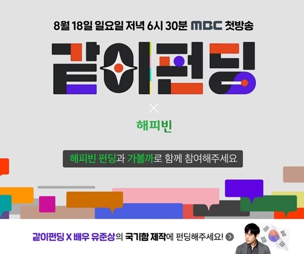 [농기자재신문=정유진 기자] 22일 MBC 예능프로그램 '같이 펀딩' 측은 "25일 방송되는 '같이 펀딩' 2회 방송 진행 중 유준상의 국기함 2차 펀딩을 시작한다"라고 전했다.