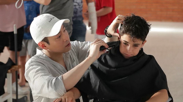 에릭의 이발 실력은 미용 봉사 때 빛을 발했다.