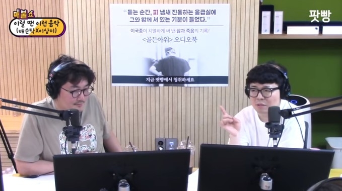 최욱은 이날 방송 오프닝곡으로 선곡된 빅마마의 '체념'을 따라부르다가 "눈물 흘린 뻔했다"고 너스레를 떨었다.