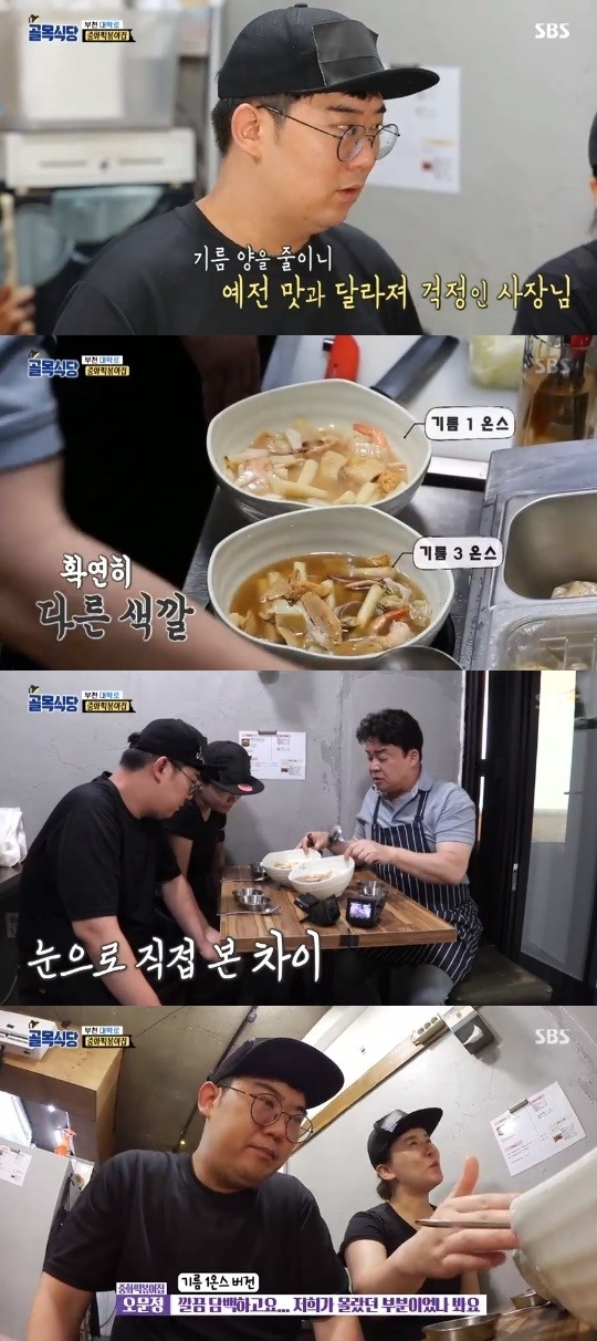 백종원이 가게에 등장한 이후 사장은 긴장한 모습으로 간을 계속 봤다.