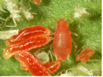 | 진딧물류 포식성천적으로 진디혹파리와 호리꽃등에, 무당벌레, 칠레이리응애, 응애혹파리, 사막이리응애 등이 있다. 진디혹파리는 국내 토착종이면서 세계적으로 널리 분포한다. 호리꽃등에는 한국(중·남부, 제주도), 중국, 일본 등에 서식하는 매우 흔한 종이다. 우리나라에 서식하는 포식성 무당벌레는 90여종이며, 우리 주변에서 가장 흔하게 볼 수 있는 종은 칠성무당벌레와 무당벌레이다. 응애혹파리는 잎응애류(점박이응애, 차응애등)를 포식하기 때문에 외국에서는 상업화 돼 널리 활용되고 있다. |