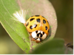 무당벌레의 산란수는 400~1000개. 발육기간은 알부터 성충까지 약 21일(5~6월 기준)에 달한다. 성충수명은 약 2~3개월 내외로 성충은 1일 약 200마리, 애벌레는 10~200마리의 진딧물을 포식한다. 애벌레·성충단계에서 포식활동하며, 진딧물 대발생시에도 활용할 수 있으며, 온도 적응성이 넓다. 정착 확인은 진딧물 군집이 있는 곳에 알, 유충, 번데기, 성충으로 확인할 수 있다. 온실온도가 높을 경우에는 알 상태로 방사하고 9월 하순경에는 온실안의 성충이 밖으로 탈출할 수 있어 주의해야 한다. 진딧물이 많은 곳은 다른 곳 보다 많이 방사한다. 친환경자재 또는 살충제 사용을 피한다. |