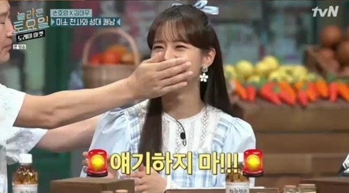 "누가 제일 마지막으로 남았냐"는 물음에 혜리가 김태우를 응시하자 신동엽은 "아무 얘기하지 말라"고 입을 틀어막아 모두를 폭소케 했다.