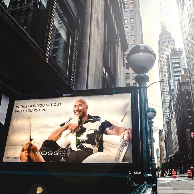 30일 드웨인 존슨은 자신의 인스타그램을 통해 “Unsurprisingly, my feetand my dog overshadowing my face in the iconic city where I started my career, NYC. Nice launch of my first @vossworld campaign as the brand’s new strategic advisor as Voss expands into new international territories, including China. I took an ownership stake in the company because I believe in the leadership, direction, quality and new health and wellness products we’ll create and deliver to you in the future. Congrats Voss team on a great launch. And congrats to my bulldog for stealing the show, as per yoosh. In this life, you get out what you put in.”라는 글과 함께 사진을 게재했다.