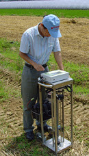 농촌진흥청은 최근 토양 깊이별 잔류 비료량을 현장에서 간편하게 측정할 수 있는 전기전도도 센서(EC)를 개발하고 경북 성주 과채류시험장에서 현장평가회를 개최했다. 이 센서는 지표면 토양만 측정할 수 있었던 기존 센서와는 달리 50cm 깊이까지 측정할 수 있어 작물의 뿌리 주변까지 확인이 가능하다. 가로 27㎝×세로 27㎝×높이 85㎝ 크기로 38㎏이며, 토양의 전기전도도뿐만 아니라 수분·경도·온도 등 4가지 항목을 동시에 잴 수 있다. 이영희 농진청 생산자동화기계과장은 “이 기기를 활용하면 토양 속 상태를 미리 파악할 수 있어 염류 제거시기를 앞당길 수 있다”며 “이번 현장 평가회를 통해 개선점을 보완한 후 염류집적 현상이 많이 발생하는 시설재배지역에 보급할 계획”이라고 밝혔다. |
