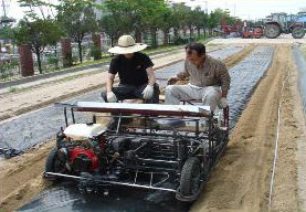 농촌진흥청은 최근 손으로 일일이 옮겨 심어야 하는 양파의 아주 심기작업(온상에서 기른 모종을 밭에 내어 제대로 심는 일)을 기계로 대체할 수 있는 양파 심는 기계 ‘양파 정식기’를 개발하고 경남 창녕에서 현장 시연회를 개최했다. 이번에 개발한 양파 심는 기계는 두 사람이 앉아 양파모를 공급하면 심는 장치가 비닐을 뚫으면서 모를 심고 흙을 덮은 후 다음 심을 자리로 이동해 연속적으로 작업한다. 이는 인력에 비해 성능을 4~5배 높여주고 앉아서 작업하기 때문에 편이성도 크게 향상시켜 주는 효율적인 기술이다. 이영희 생산자동화기계과장은 “양파 심는 기계는 양파 심는 작업을 사람이 하는 것과 똑같이 편리하게 해준다.”며 “현장 시연회를 통해 개선점을 확인하고 반영해 내년부터 농가에 시범 보급할 예정”이라고 밝혔다. 양파 생산액은 지난해 2804억원으로 농가의 주요한 소득 작물이지만 양파 정식은 전체 작업시간의 26%를 차지하는 작업으로 기계화가 매우 필요한 작업이나 그동안 인력에 전적으로 의존해 왔다. |