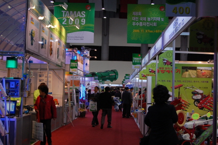 올해로 8회째인 ‘TAMAS 2009’는 230개 업체가 563개 부스를 설치하고 친환경농자재·농기계·축산기자재·농업바이오·종자·시설원예자재 등을 전시했다. 주최 측에 따르면 대만·인도·태국 등 9개국에서 90여명의 바이어가 120건의 수출상담 및 계약을 맺고 4일간 전국 각지에서 2만여 명의 참관객이 다녀간 것으로 집계됐다. 이번 전시회에는 친환경농업에 필요한 다양한 미생물제제와 천연물질, 4종 복비를 선보여 주목을 받았다. 또 농업용무인헬기와 자동접목로봇, 소형 트랙터, 광역제초기 등 농작업 편이와 작업능률을 올릴 수 있는 첨단 농기자재가 선보여 호평을 받았다. 특히 LED분야의 활용이 눈에 띄게 늘어난 점이 특징으로 꼽혔다. |