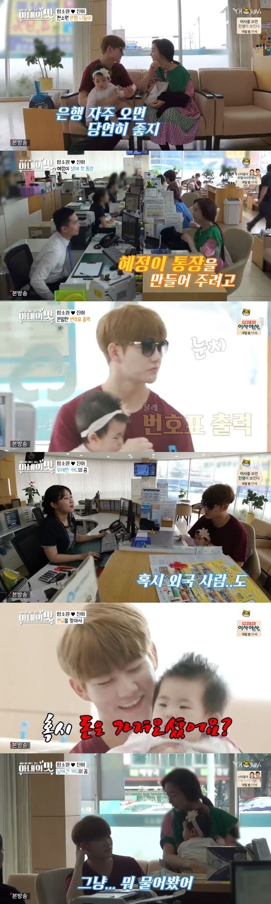 진화는 함소원이 바쁜 사이, 은행원에게 다가가 "외국인도 카드를 만들 수 있냐."고 몰래 물었다.