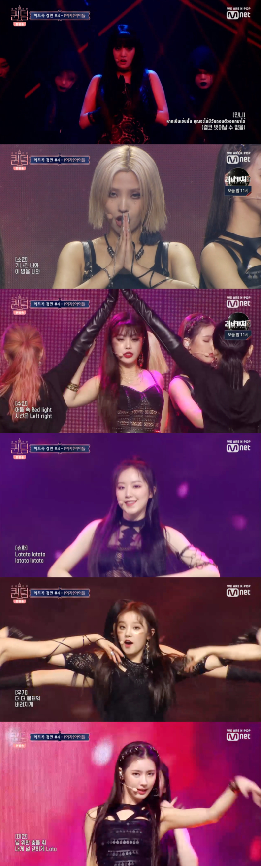 (여자)아이들은 “항상 목표로 1등을 두고 간다”며 당찬 포부를 표현하며 본격적인 무대를 시작했다.