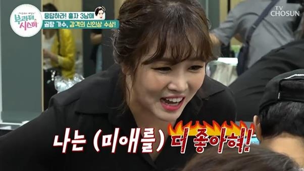 홍자 어머니는 “나는 (정미애를) 더 좋아해”라고 답해 시청자들을 폭소케 만들었다.