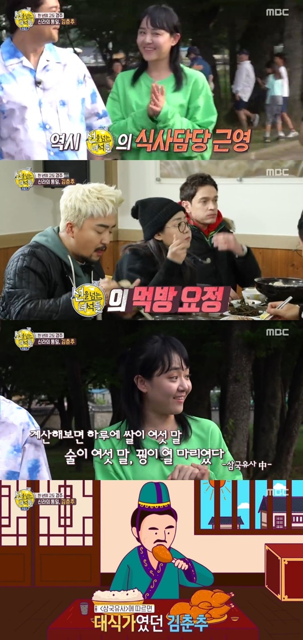 대해 문근영은 "저도 김춘추에 대해 아는 게 있다. 김춘추가 엄청난 대식가였다. 원래 기본 세 끼를 먹었는데 백제를 멸망시킨 후 두 끼로 줄였다"며 "하루에 쌀 여섯 말과 술 여섯 말, 꿩 열 마리를 두 끼에 나눠 먹었다"고 말했다.
