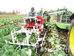 훗카이도 JA시카오이쵸에서 현장시현에 나선 결과 0.27m/s의 작업 속도로 전체의 86%의 양배추를 손상 없이 수확했다. 이 기기는 내년도 실용화에 나서게 된다.