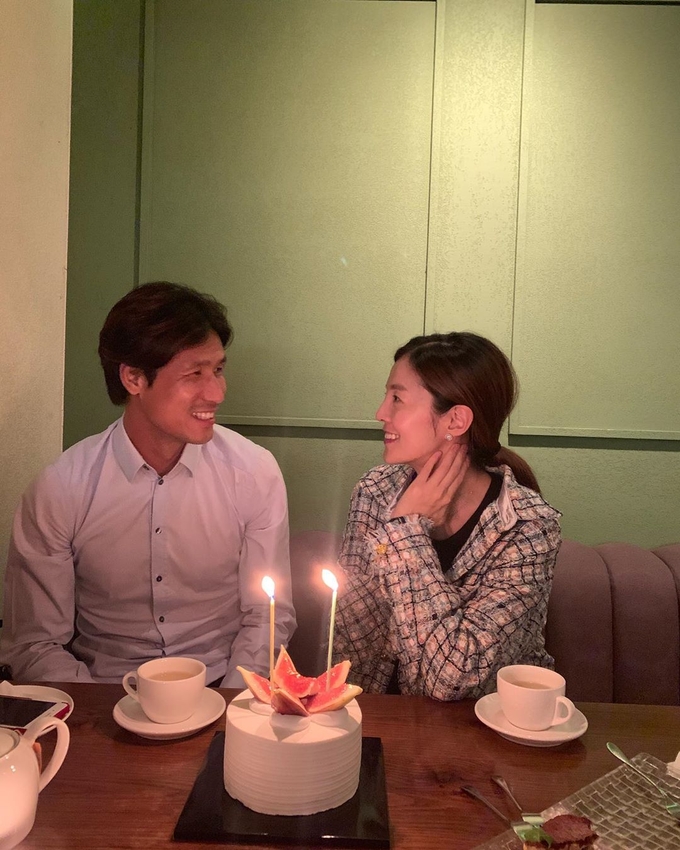공개된 사진 속에는 김성은의 모습이 담겨 있는데, 생일 케잌 앞에서 남편과 다정한 모습이 포착됐다.