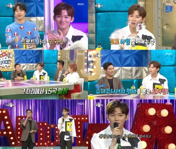 '라디오스타'를 위해 개인기를 준비한 승국이는 주현미의 '짝사랑'을 부르는 정엽을 성대모사하는 것은 물론, 임창정의 '또 다시 사랑' 트롯 버전을 완벽하게 소화해내며 MC와 출연진들의 뜨거운 환호도 받았다.
