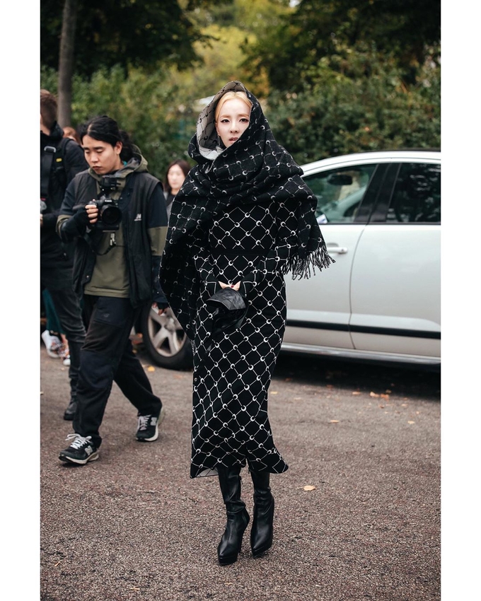 25일 산다라박은 자신의 인스타그램을 통해 독특한 의상을 입고 있는 사진을 게재했다.