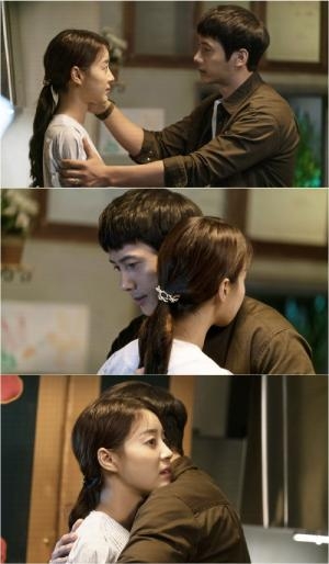 이상우는 한지혜를 꼭 끌어안고 등을 토닥토닥 해주고 있다.